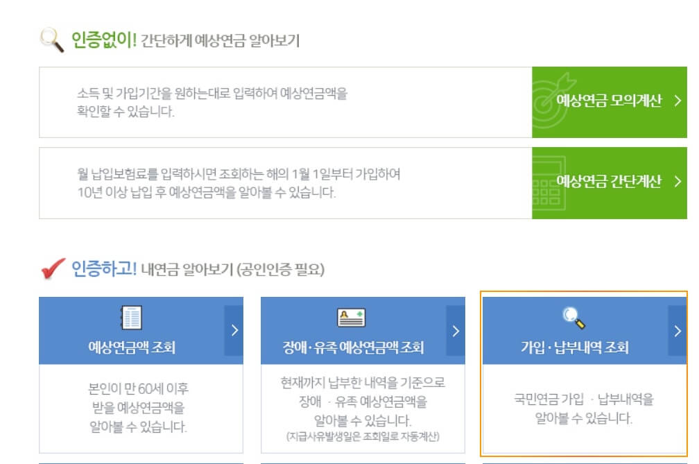 국민연금 예상 수령액 알아보기와 납부액 조회는 국민연금공단 사이트를 참고해주세요.