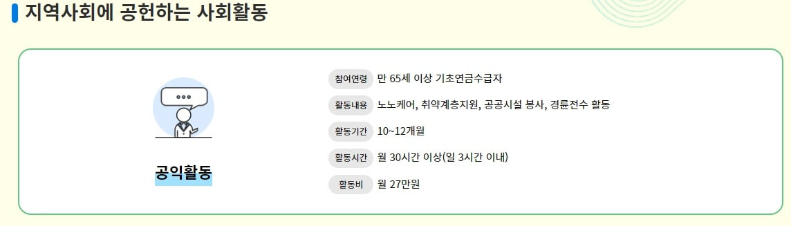 • 참여연령 : 만 65세 이상 기초연금수급자