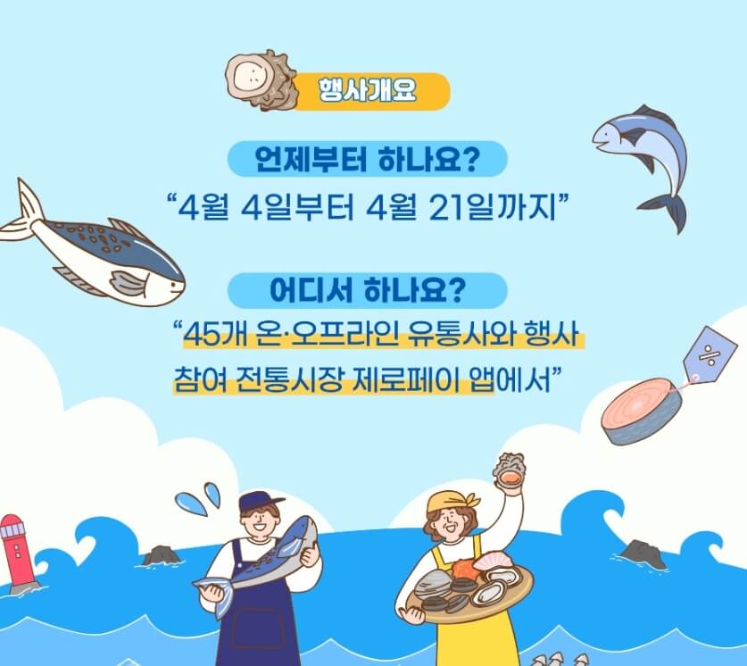 대한민국 수산대전 할인행사는 주요 온라인과 오프라인 매장, 전통시장에서 진행됩니다.