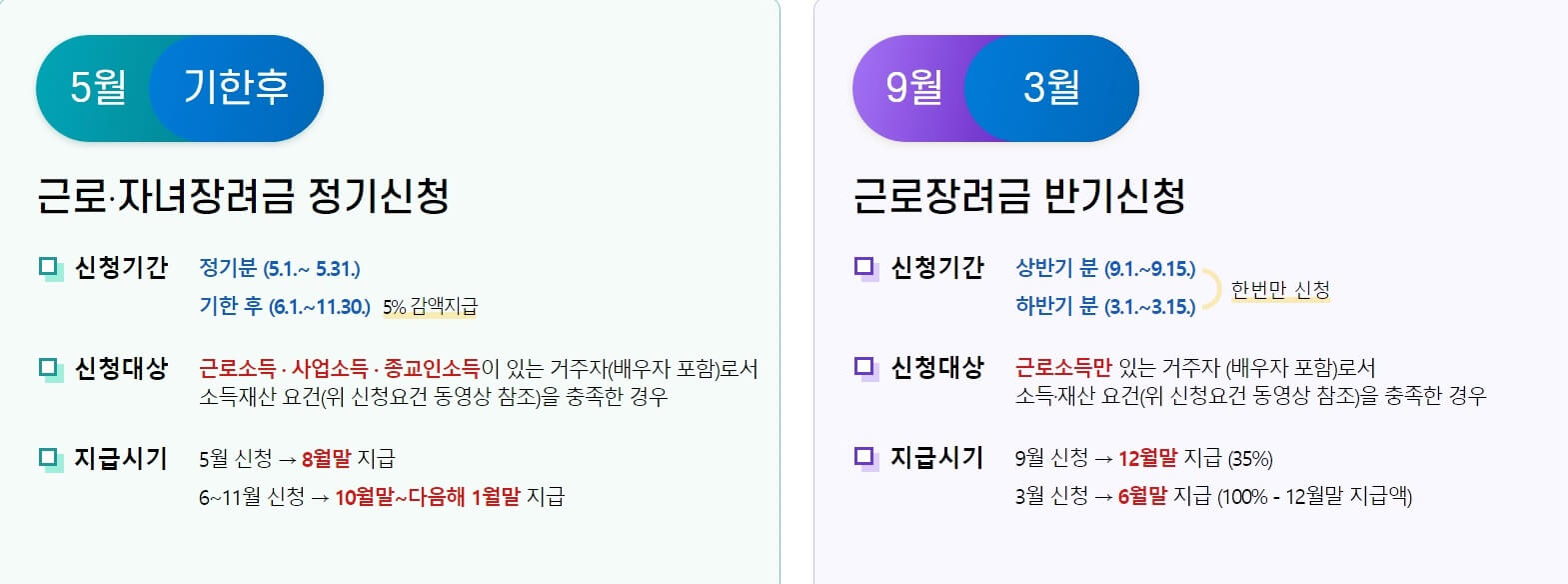 - 2024 근로장려금 반기 신청 상반기 분 : 9.1~9.15