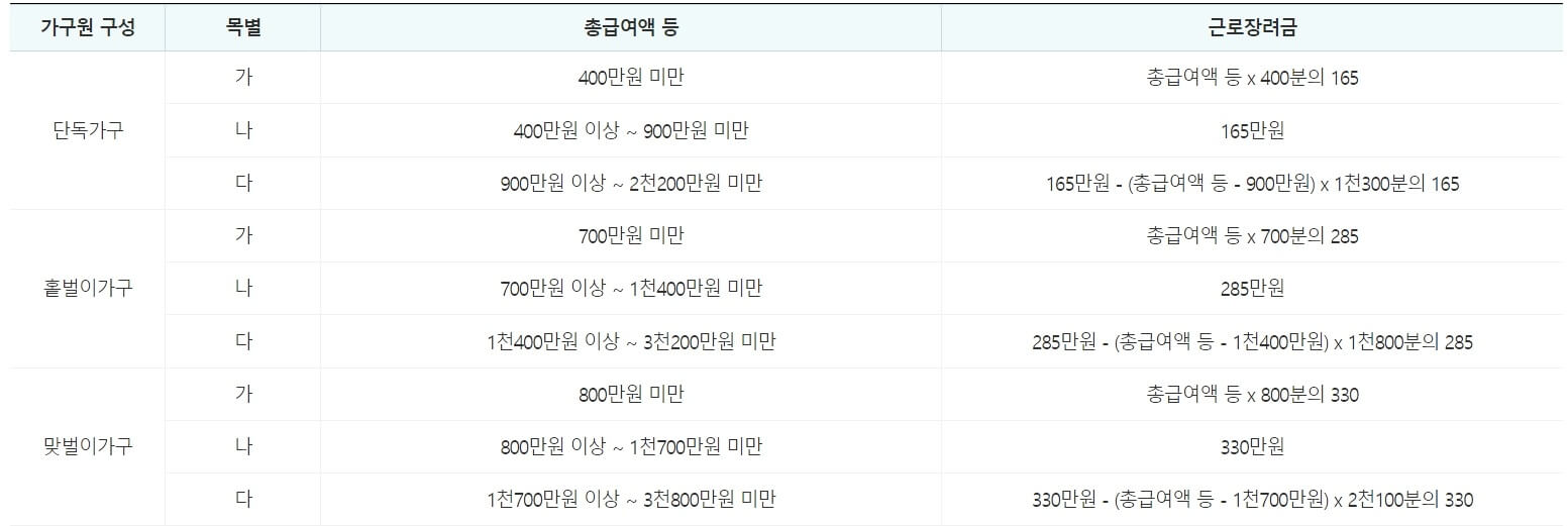 2024 근로장려금 지급액 계산방법