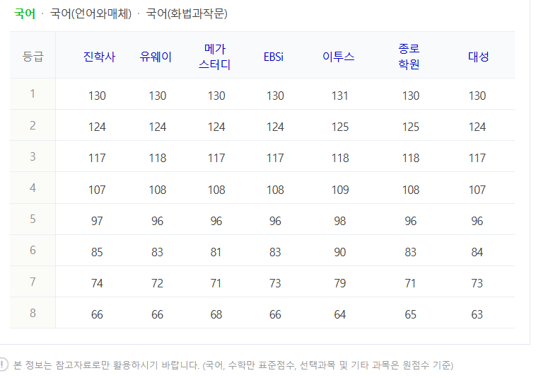 각 학원에서 발표한 2025 수능 국어 예상 등급컷입니다.